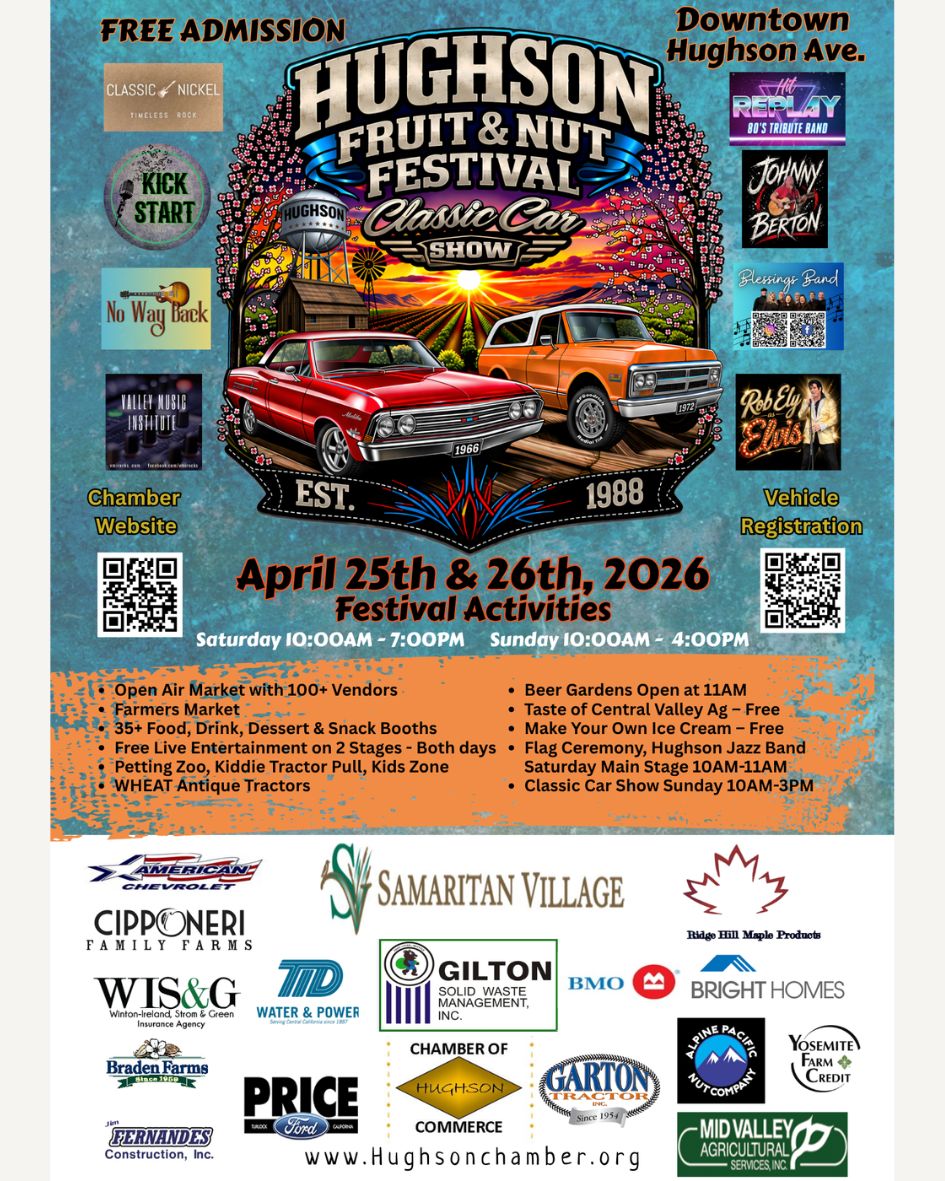 Hughson Fruit & Nut Festival Coming Soon Posted 2 days ago in Helpful Reminders 0 Comments 0 Likes SAVE THE DATE! Tags: out on the town, pet event Share: