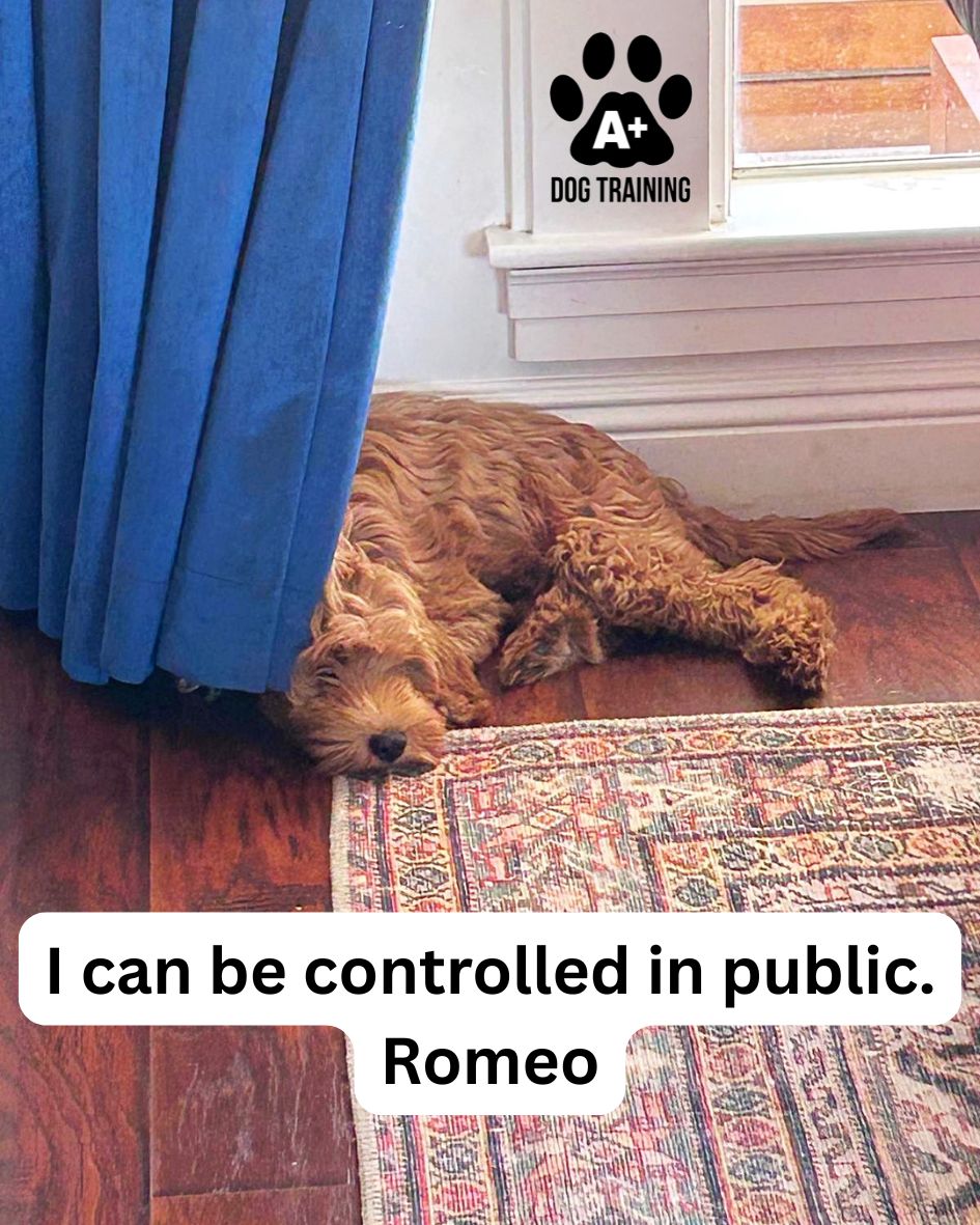 Meet Romeo, a Double Doodle with goals to be a kind, calm dog and be controlled in public. Welcome to our pack family, Romeo!